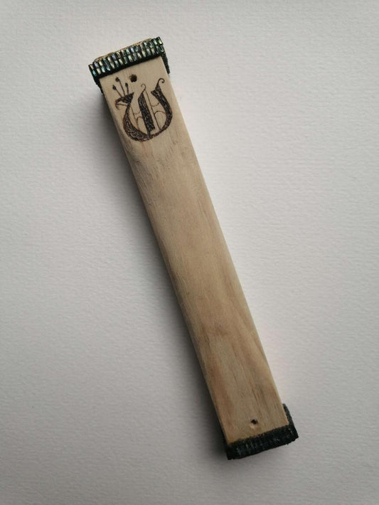 Sold outBlackletter Shin Wooden Mezuzah Case