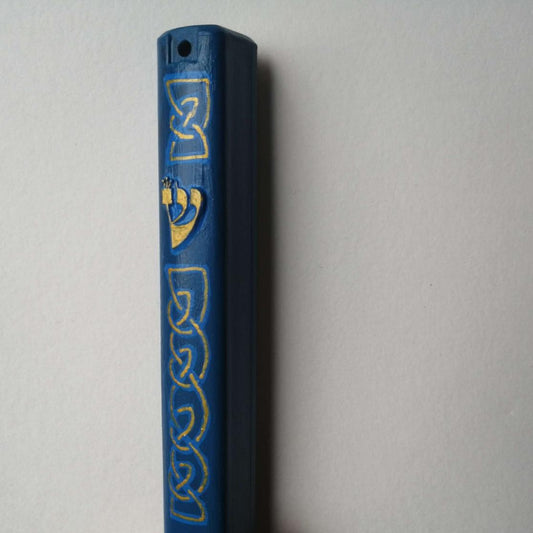 Blue & Gold Celtic Knotwork Acrylic Mezuzah Case